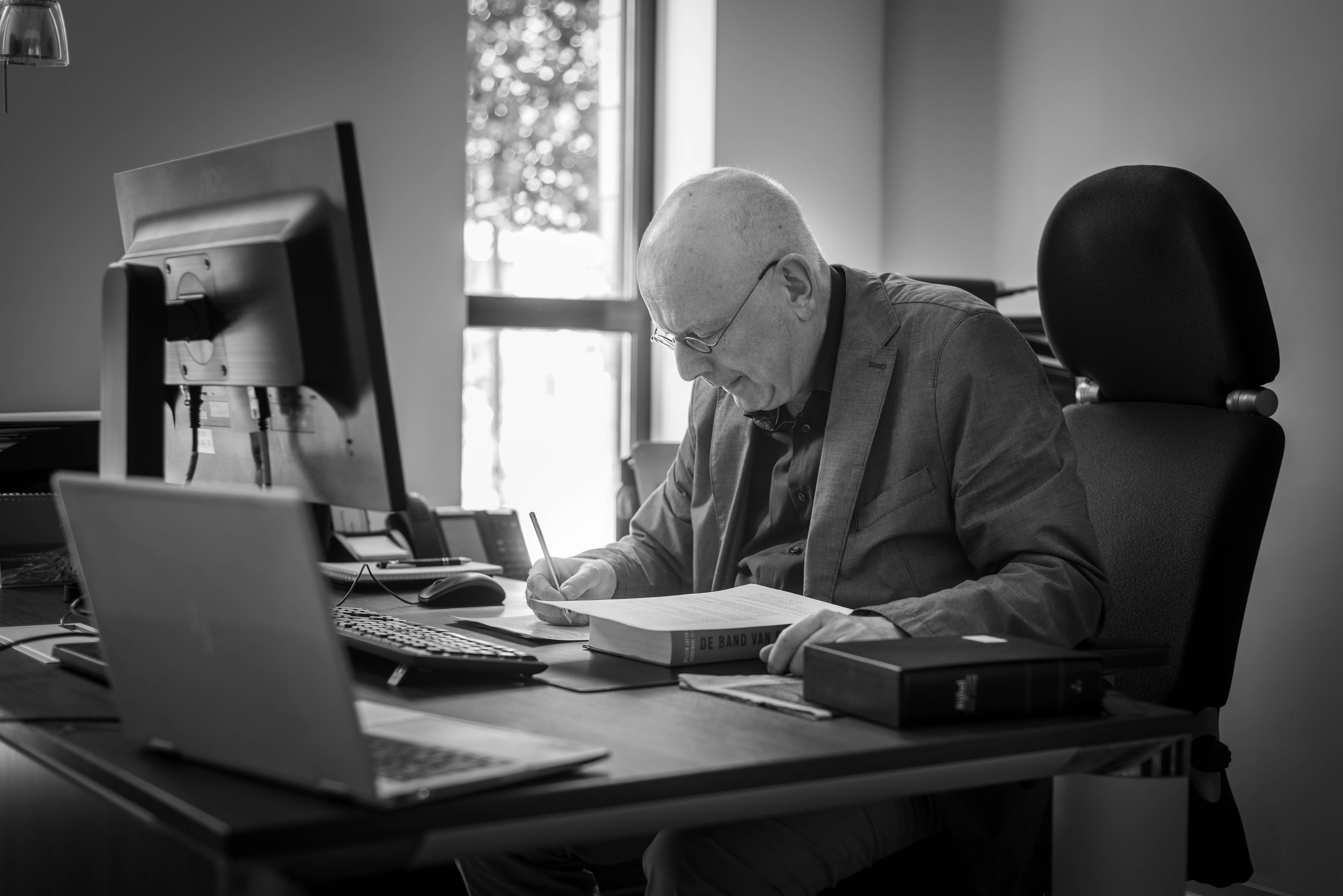 J. (Jan) Hoek (1950), married to A. B. F. (Alie) van Kooten. From 1975 to 1979, he was a minister in Blauwkapel-Groenekan and from 1979 to 1994 in Veenendaal. He then worked as a theology staff member at the HGJB (Reformed Youth Association) and as a lecturer at the CHE (Christian University of Applied Sciences) in Ede and the Theological University of Applied Sciences of the Gereformeerde Bond (Reformed Association). From 2004 to 2015, he was a visiting professor at the Evangelical Theological Faculty in Leuven and an endowed professor at the Protestant Theological University (Kampen and Groningen campuses). He is the father of three children and has ten grandchildren. He has published several works on eschatology (Christian expectations for the future), Reformed spirituality, and church development.